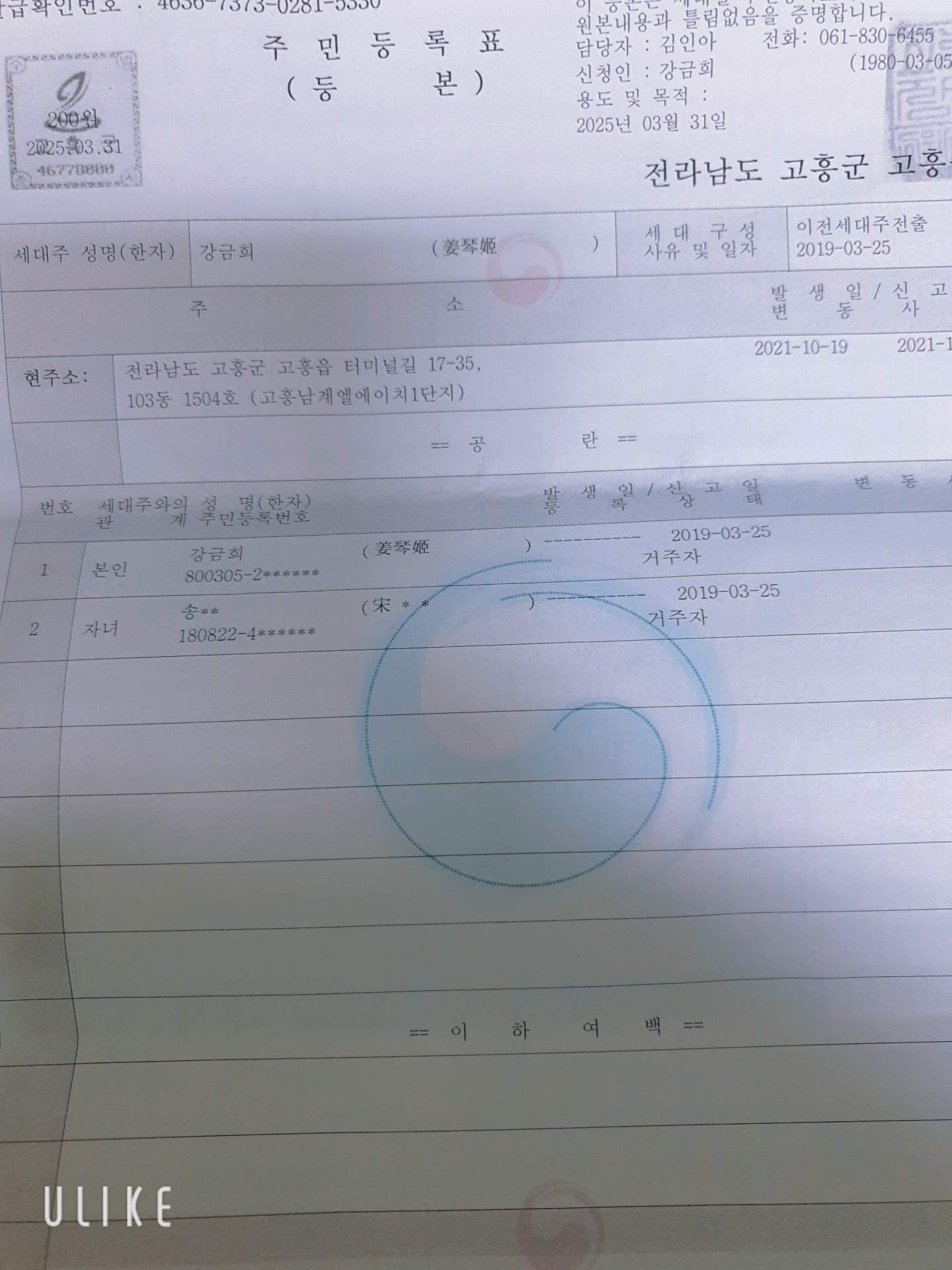 ★ 작성 내용을 확인하기 위한 주민등록등본(1개월 이내)을 첨부하여주시기 바랍니다.